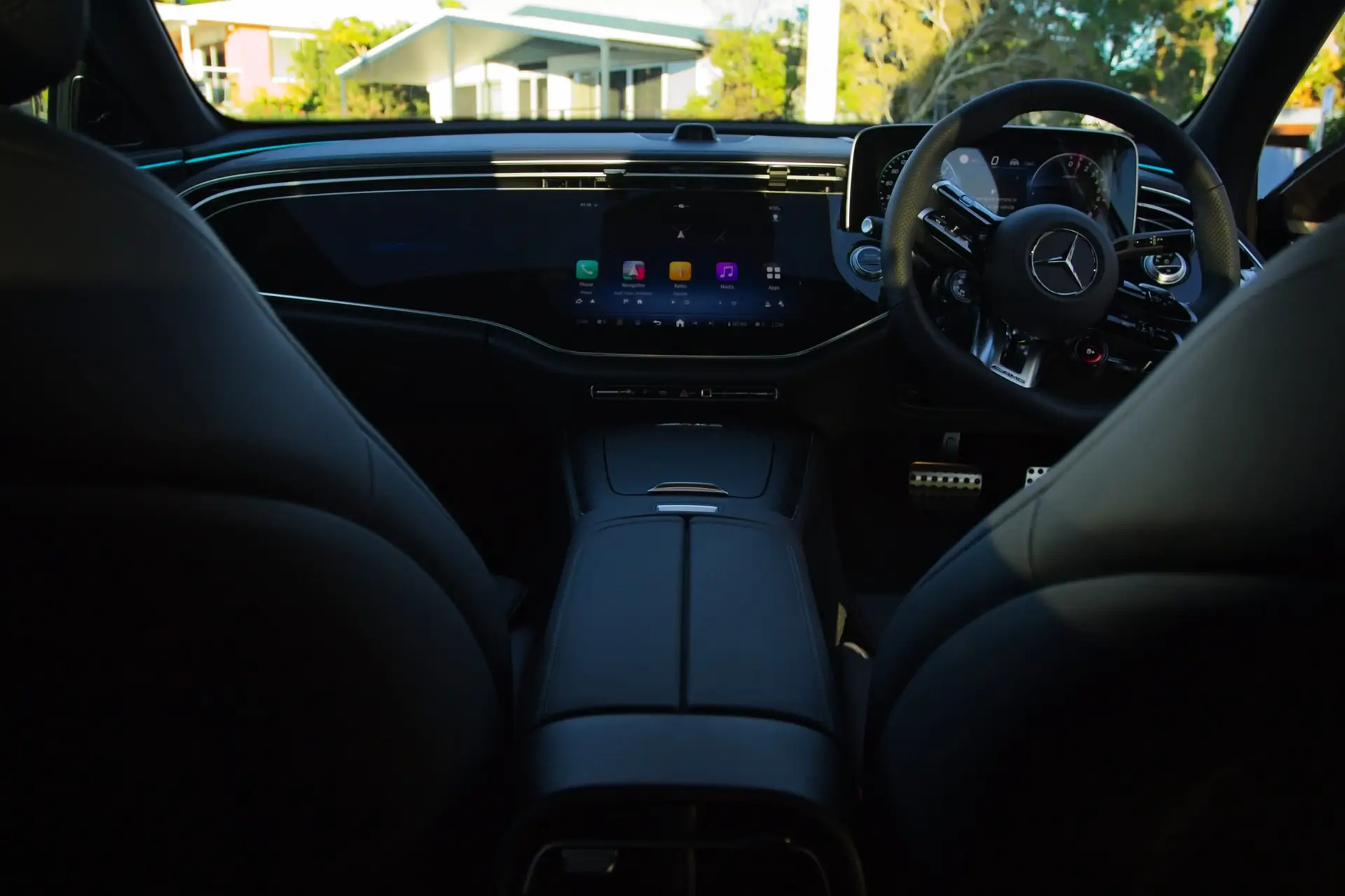 Inside, the E53 Hybrid is pure sophistication, featuring AMG sport seats, widescreen digital displays, ambient lighting and the latest MBUX infotainment system.